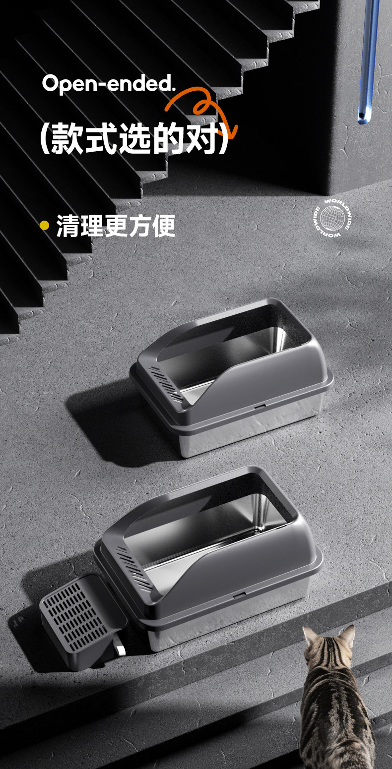 스테인레스 스틸 고양이 쓰레기 상자 초대형 강화 안티 스플래시 고양이 화장실 반 밀폐형 초대형 개방형 새끼 고양이 쓰레기 상자스토어 가기