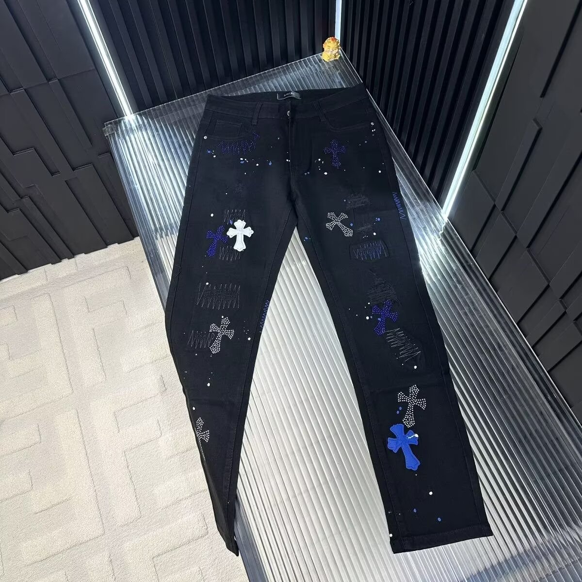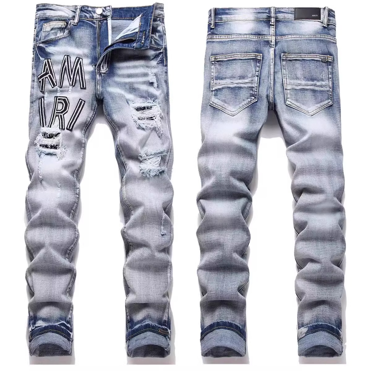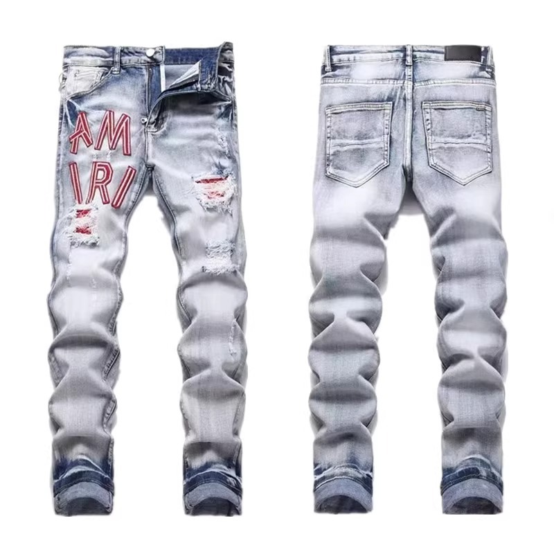 AMIRI 대외 무역 유럽과 미국 스타일의 스트레이트 슬림 스트레치 자수 남성용 플레어 청바지의 현물 국경 간 공급스토어 가기