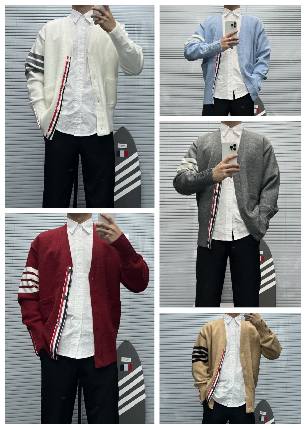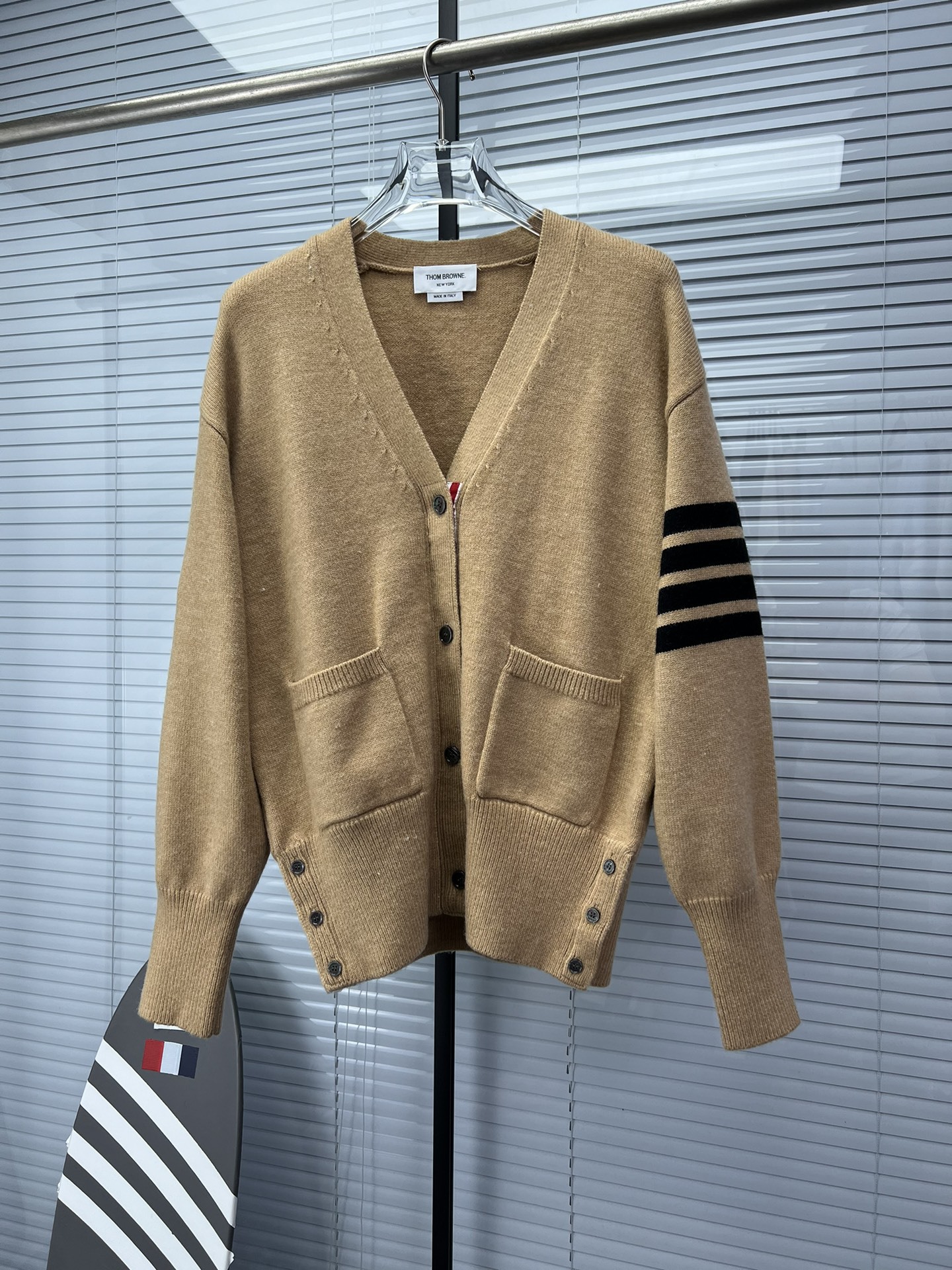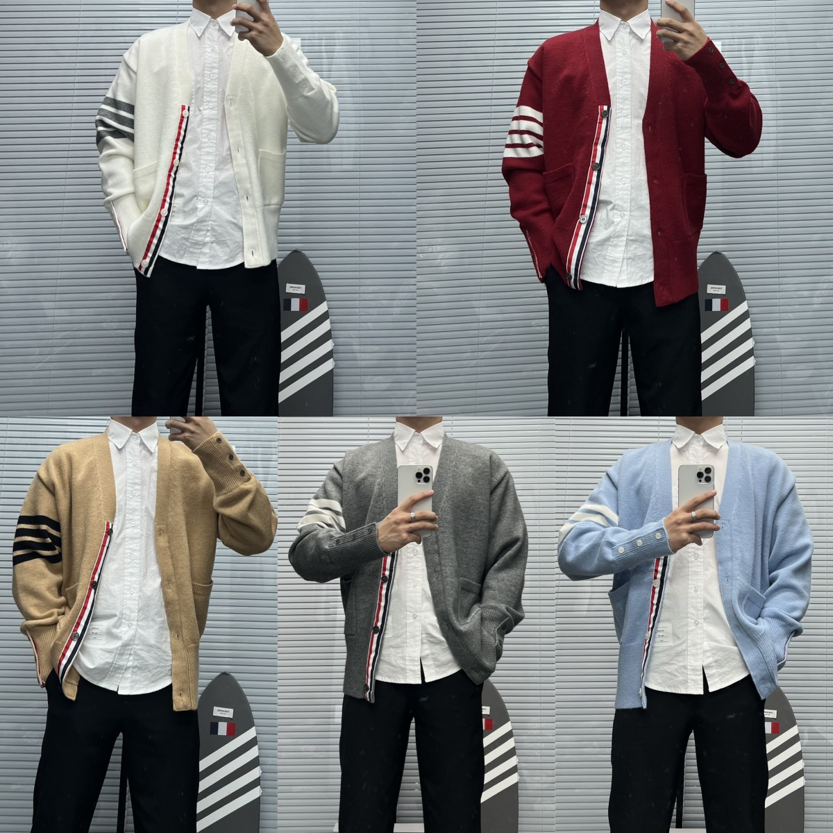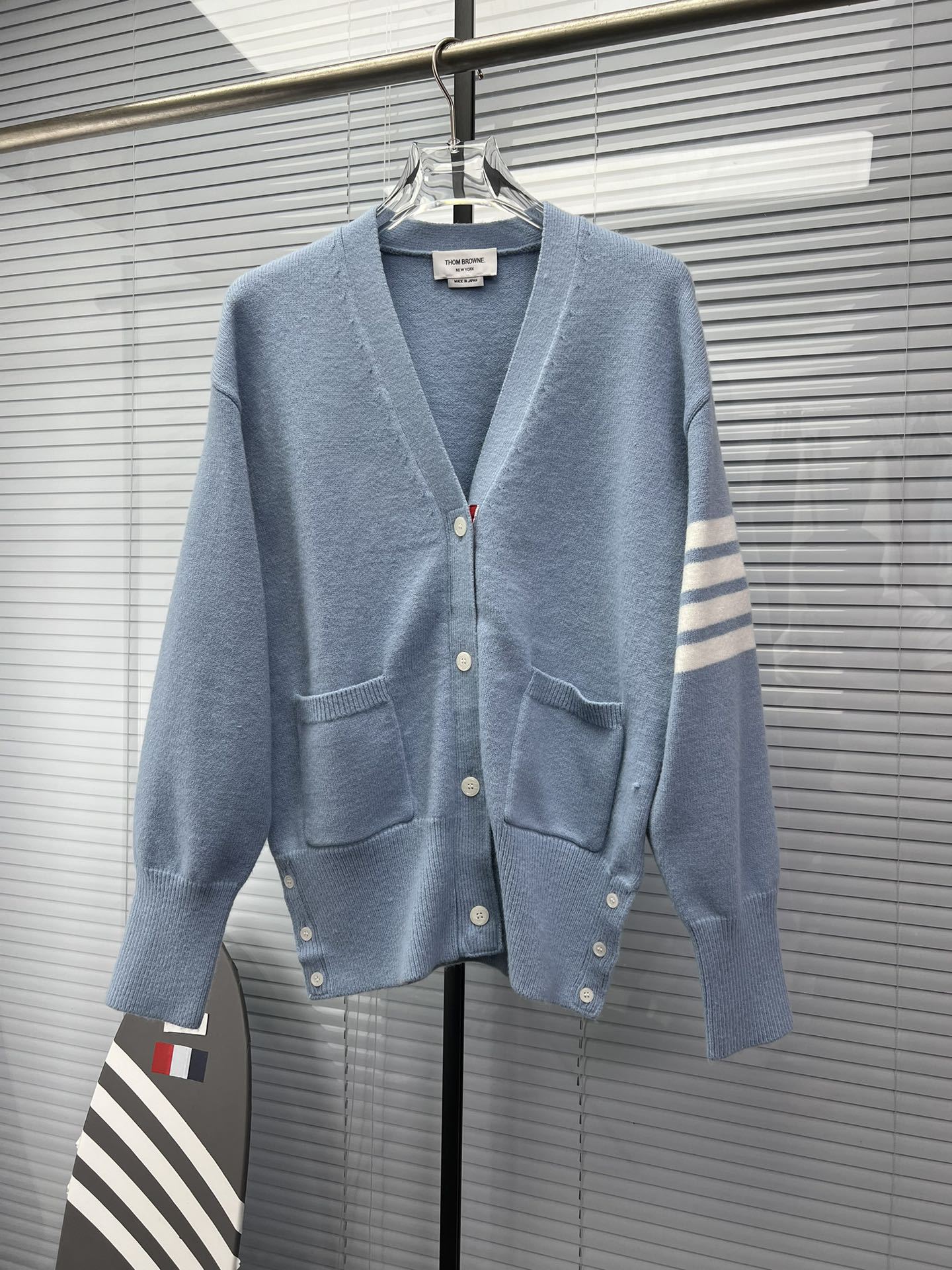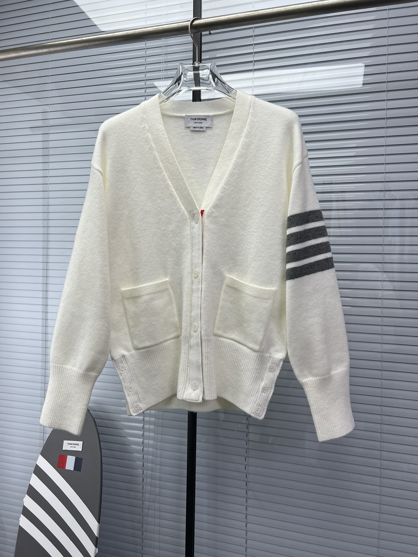 TB 신상 남성용 하이엔드 다용도 4바 스트라이프 니트 루즈 OS 버전 카디건 학습 브이넥 스웨터 재킷스토어 가기