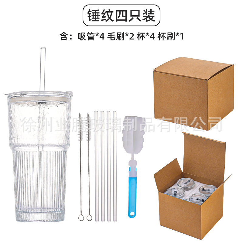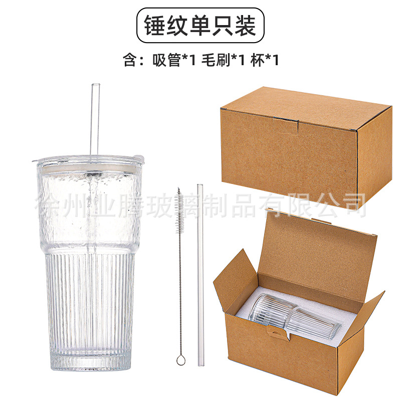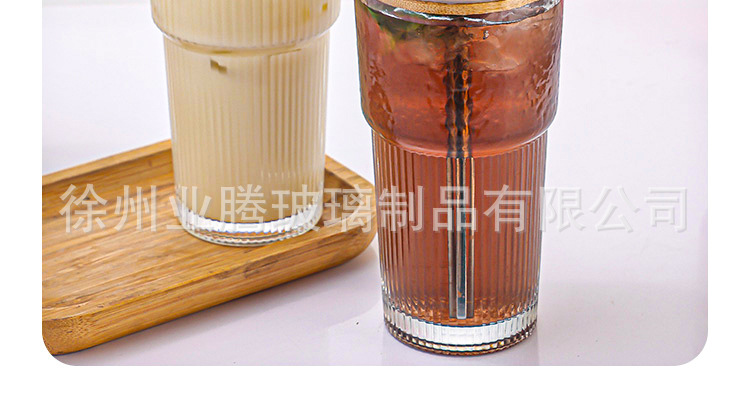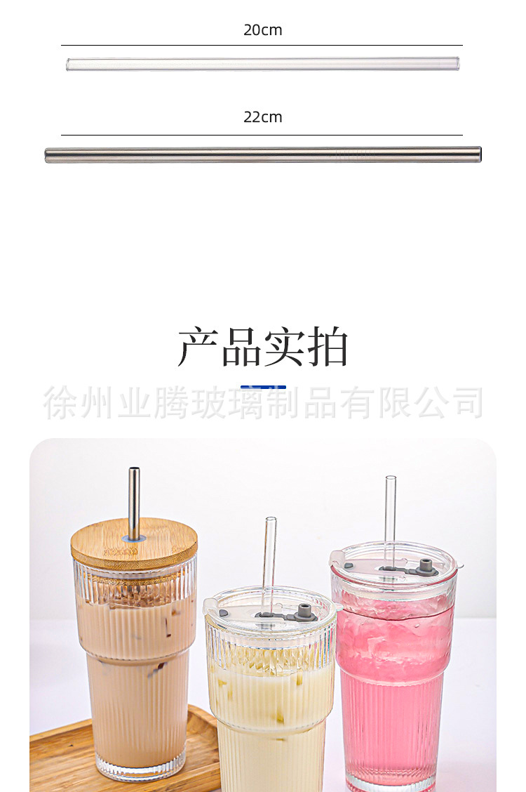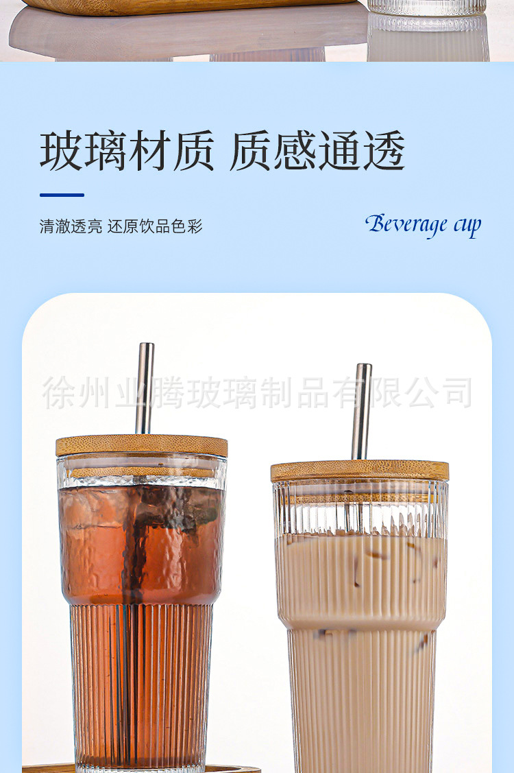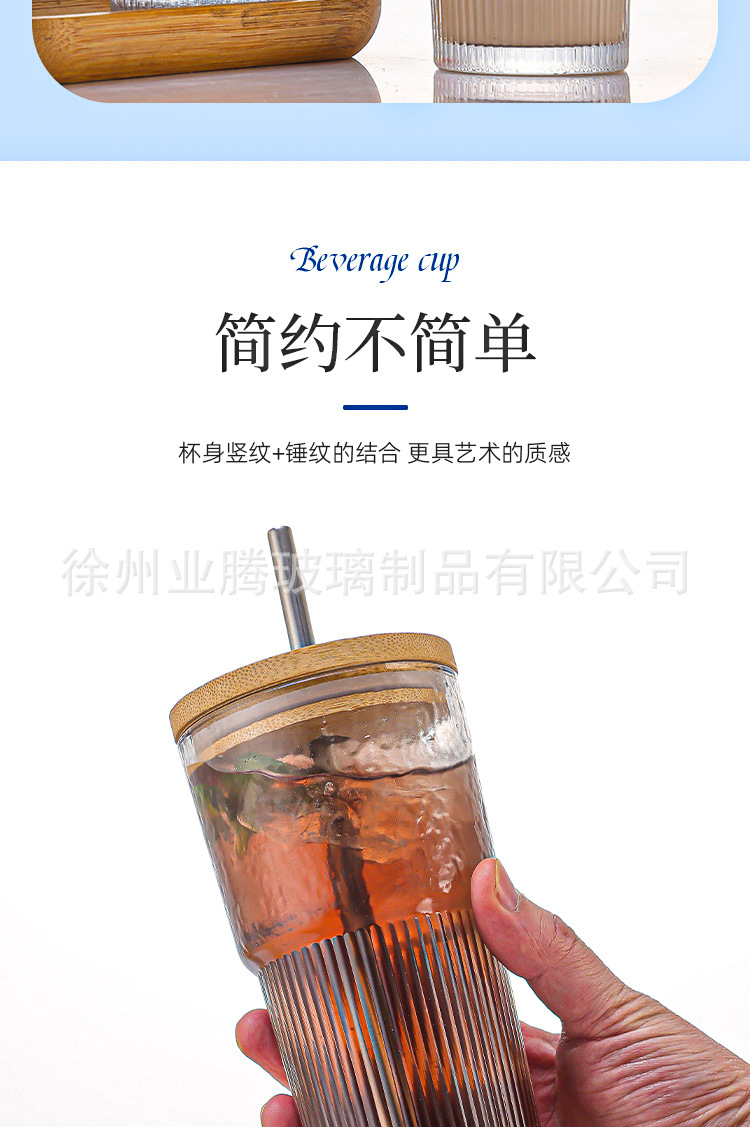 Amazon 20oz 대나무 유리 수직 패턴 컵 나무 뚜껑 음료 컵 600ml 광택 밀짚 차가운 음료 컵스토어 가기