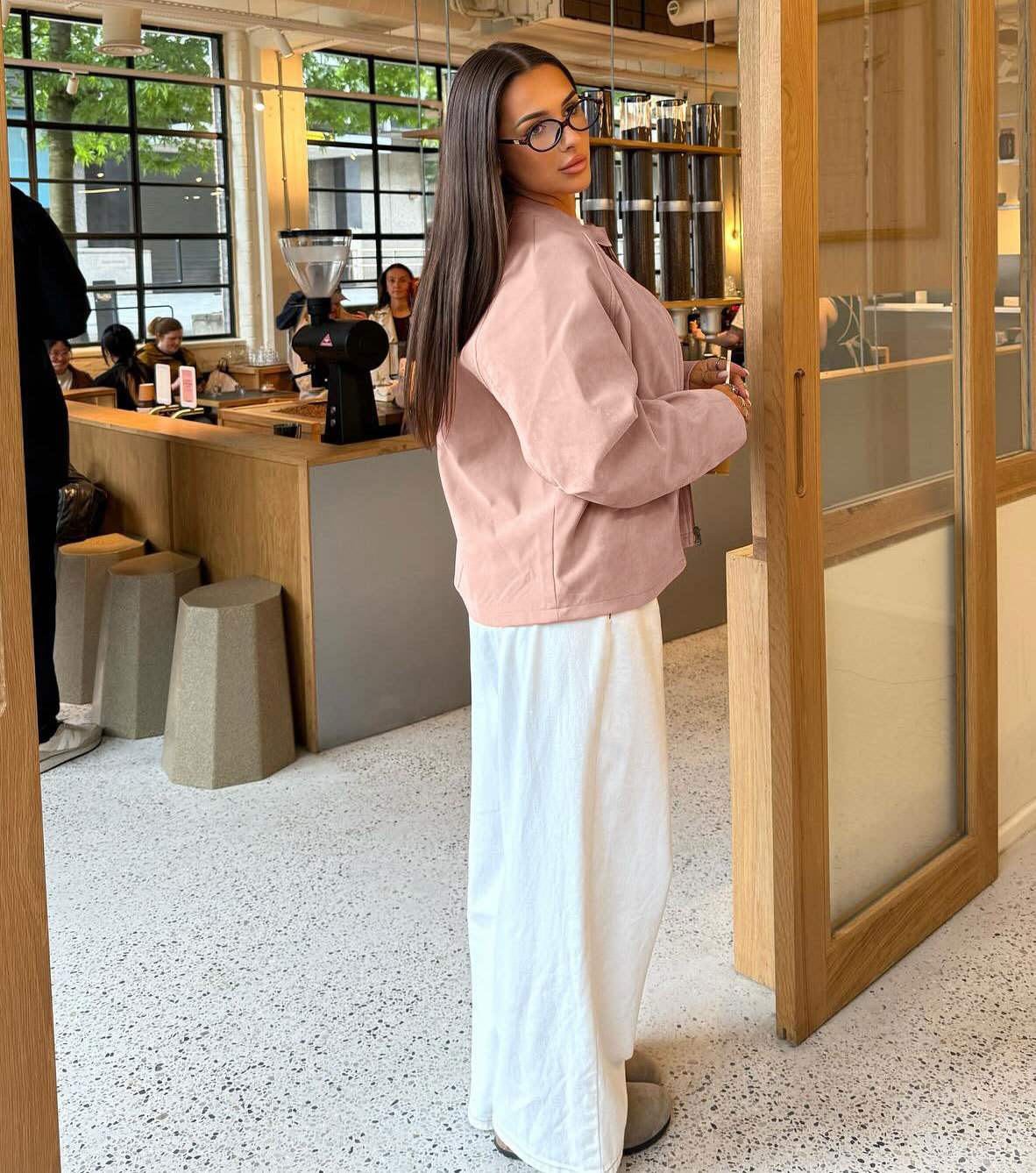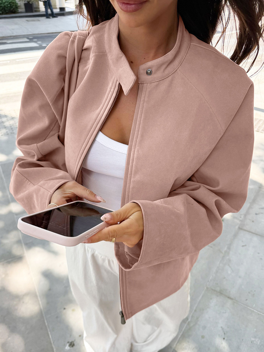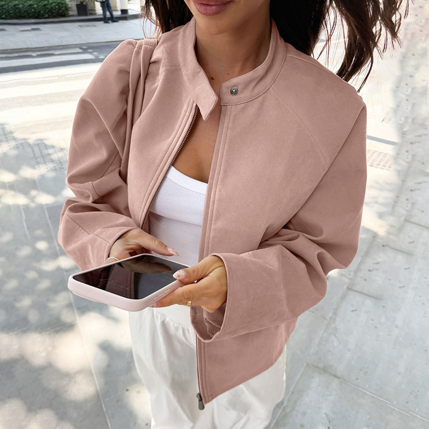 2025 새로운 가을, 겨울 스탠드 칼라 스웨이드 긴팔 재킷 여성 디자인 감각 패션 유럽과 미국의 국경 간 통근