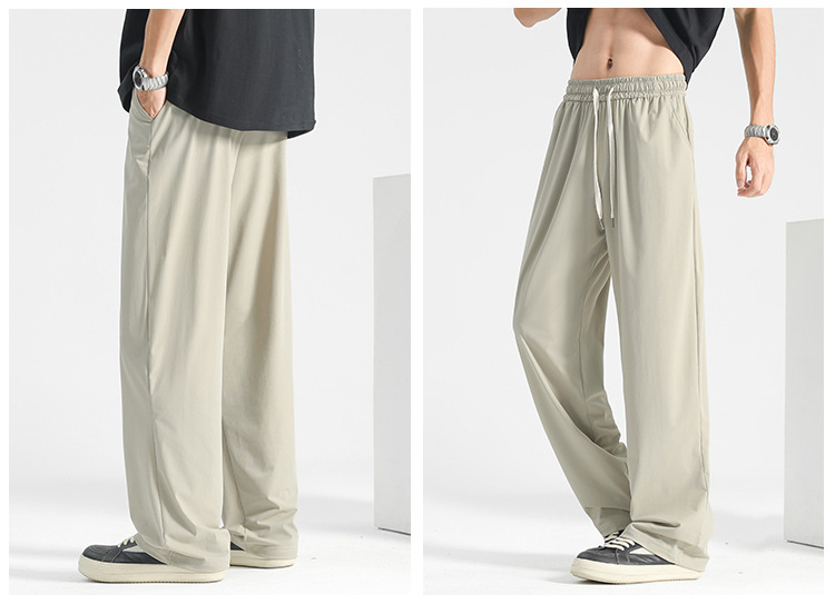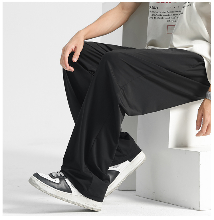 冰丝速干直筒裤子男款夏季薄款垂感男裤休闲长裤凉感运动阔腿卫裤