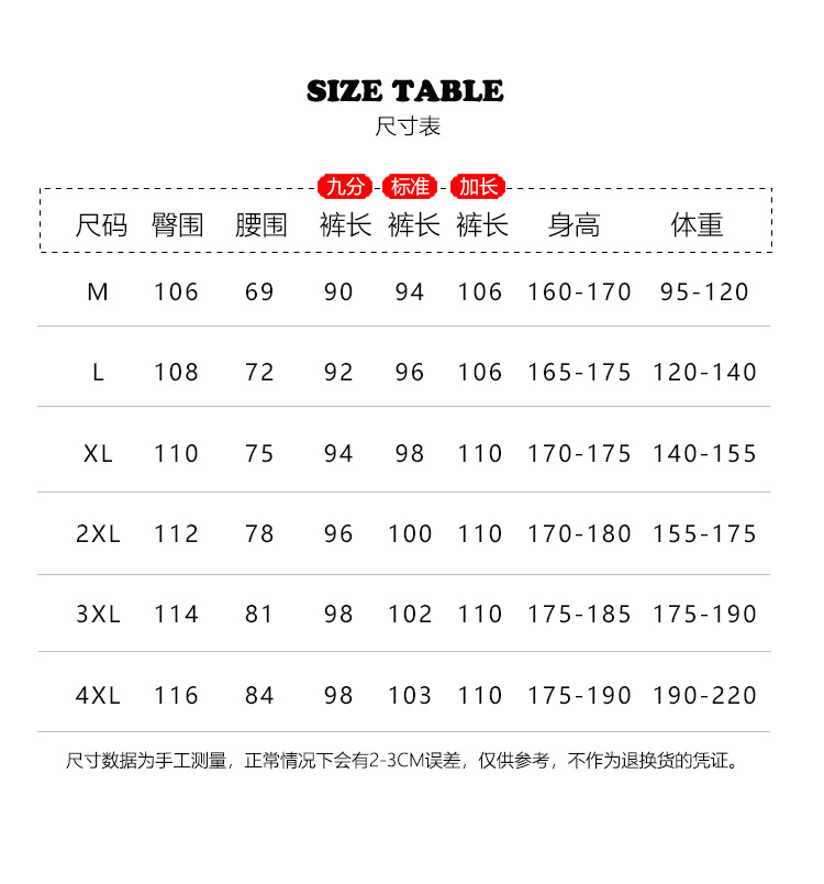 • 4XL(190-220)斤