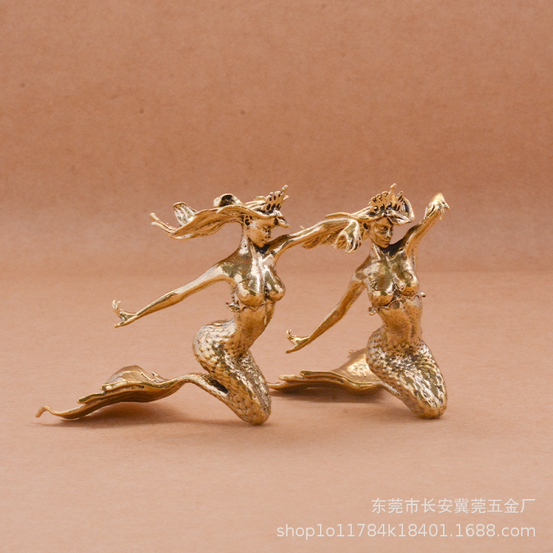 黄铜新款创意美人鱼公主摆件杂项收藏家居装饰工艺品动漫女人鱼