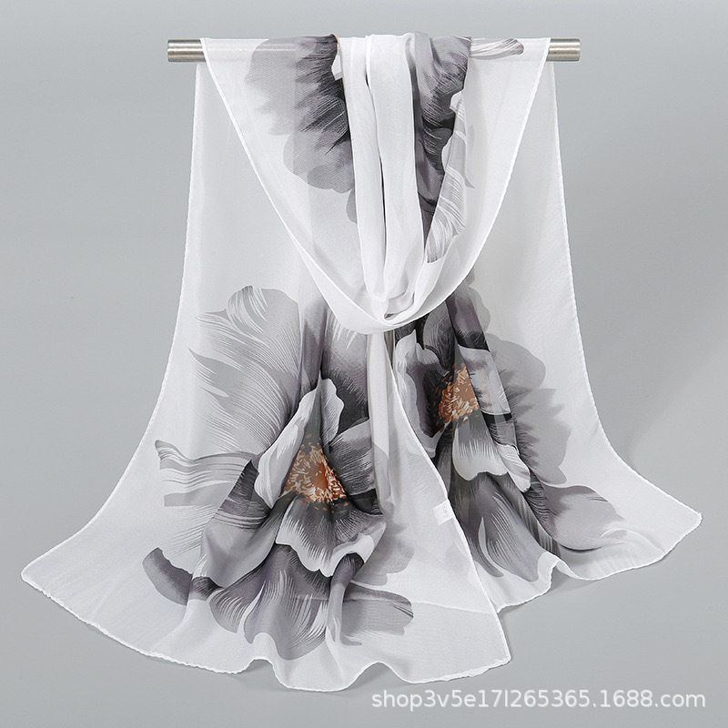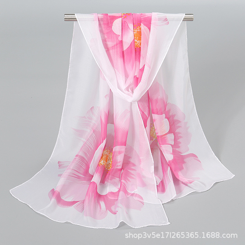 韩版新款大花朵雪纺长围巾夏季防晒装饰披肩围巾两用小丝巾妈妈款스토어 가기